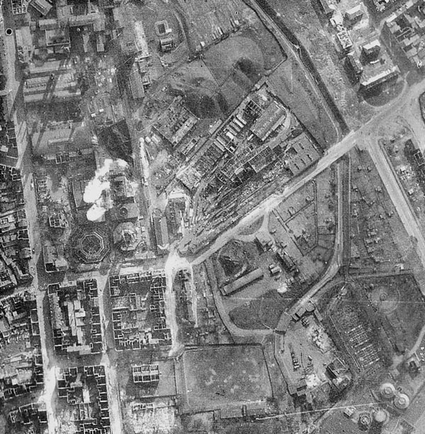 The centre of the bombing area was right across the giant Krupps factory, just west of the city centre, with later bombing drifting back to the north-western outskirts. Photographic interpretation assessed that Krupps received 30 per cent more damage on this night than on the earlier successful raid of 5/6 March.