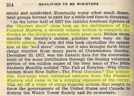 "A stinging exposure of the clergy".. quite interesting given that most of what is written in The Finished Mystery turned out to be false prophecy???