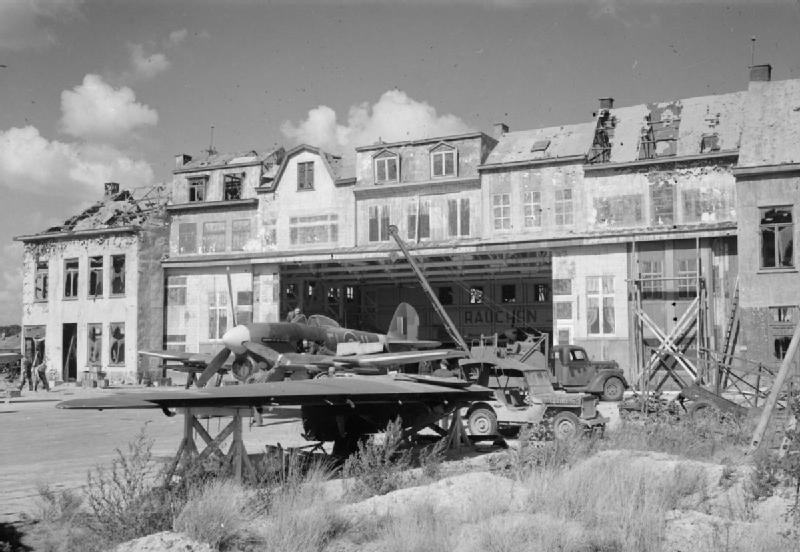 The German airforce had evacuated the aerodrome only two days earlier. The aerodrome was littered with crashed German aircraft that had been shot up by rocket firing Hawker Typhoons. There were JU 88s and Focke Wulf 190s and Messerschmitts and JU 188s all over the ground. We were instructed not to approach them because they might have been booby-trapped.