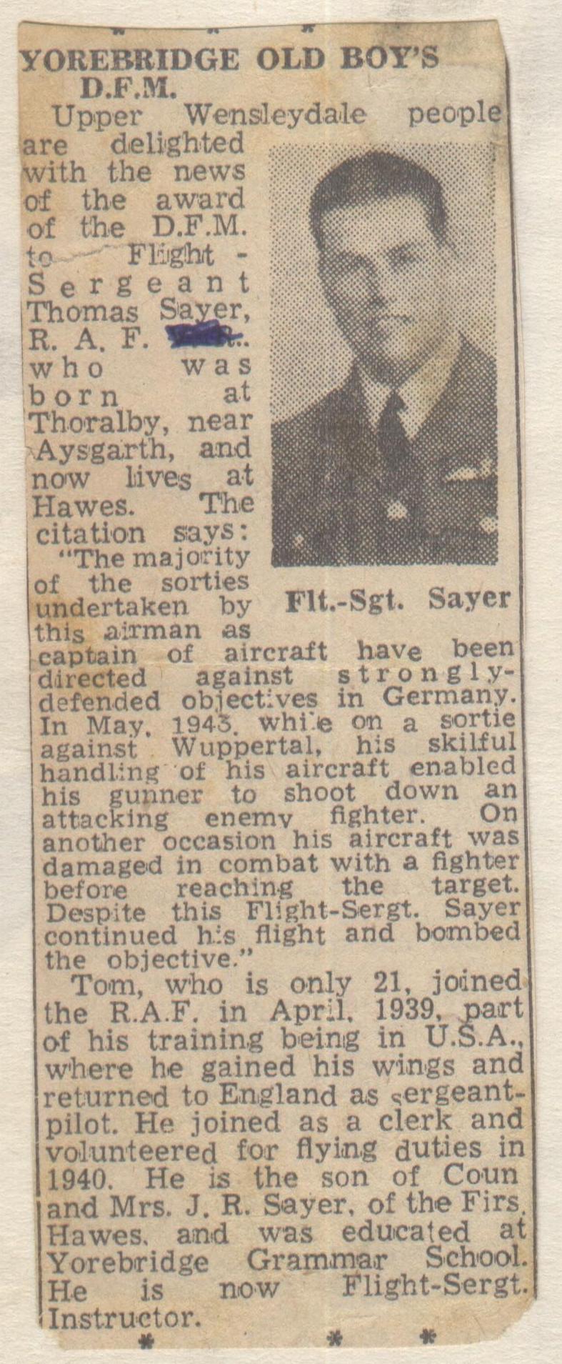 591744, Flight Sergeant Thomas SAYER, Royal Air Force Volunteer Reserve, No. 102 Squadron.